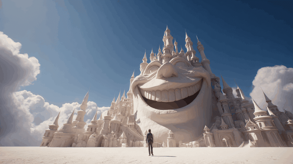 まず、代表的な要素として挙げられるのが巨大な建造物です。ディズニーランドでは「シンデレラ城」、ディズニーシーでは「プロメテウス火山」や「アクアスフィア(地球儀)」など、パークの象徴的構造物が極めて大きく設計されています。たとえば、シンデレラ城の高さは約51メートルに達し、見る角度によっては地平線を超えてそびえるような圧迫感を与えます。こうした巨大構造物は、人間の視野をほぼ占有するため、「逃げ場がない」という錯覚を誘発しやすいとされています。